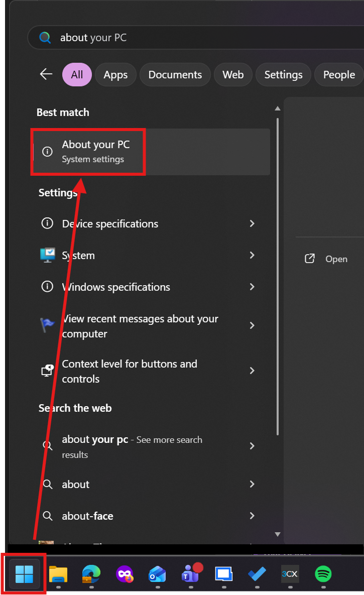 2. Type “About your PC” and select the result